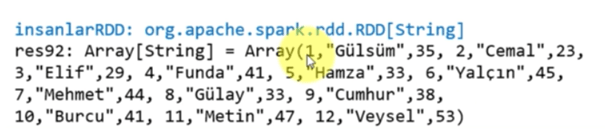 Val insanlarRDD = sc.textFile(“/user/dosya/insanlar.csv”)