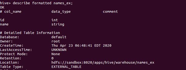 Temel olarak iki tablo yapısı bulunur. Manage table and External table