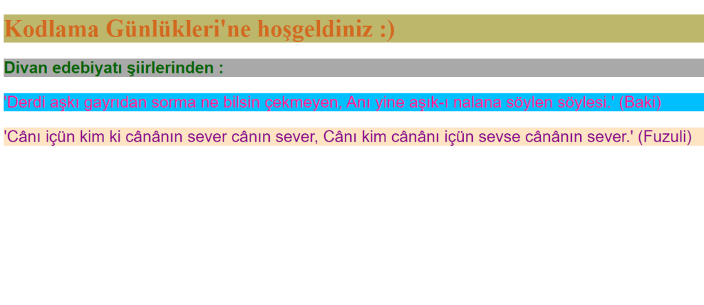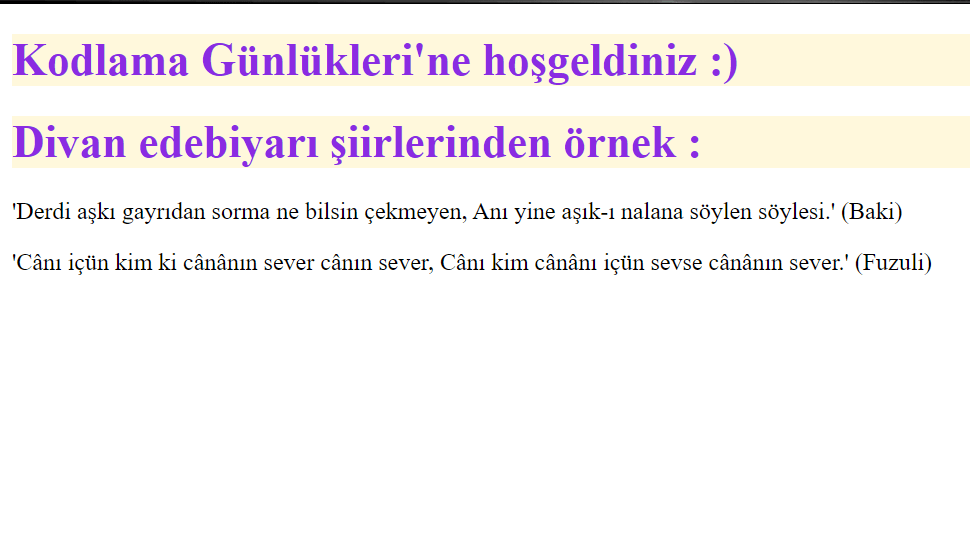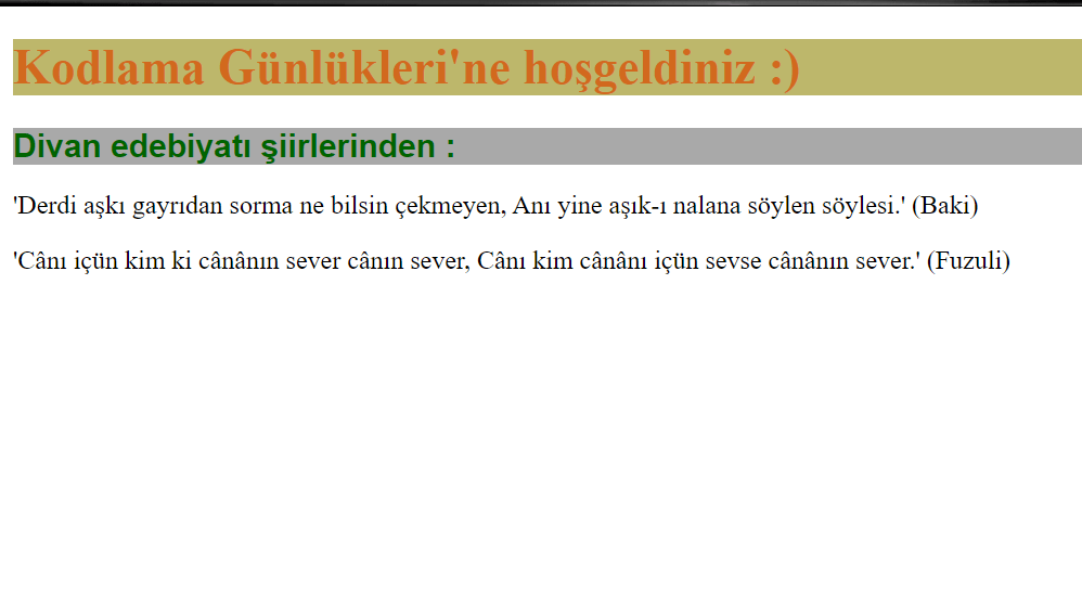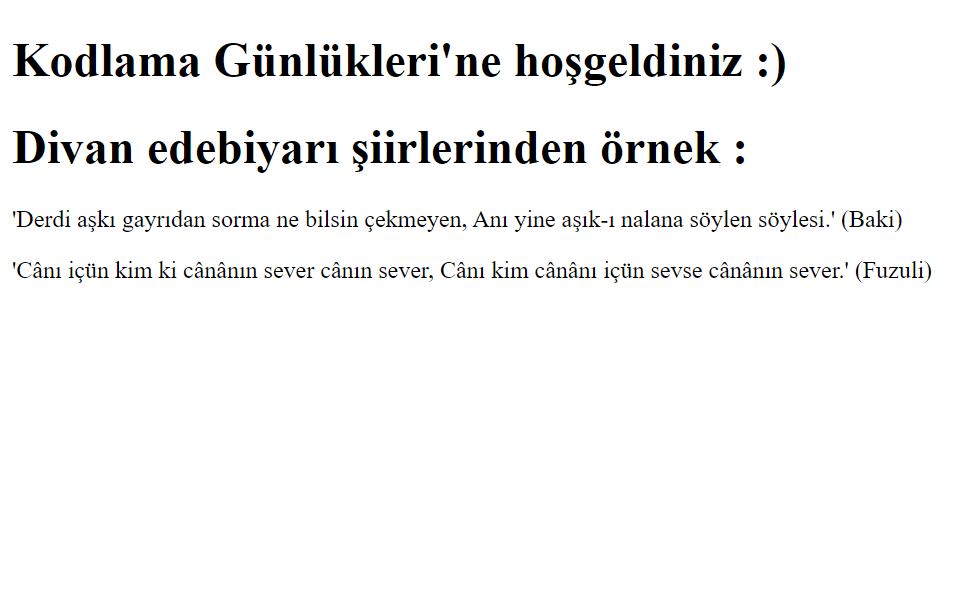 <h1>Kodlama Günlükleri'ne hoşgeldiniz :)</h1>
